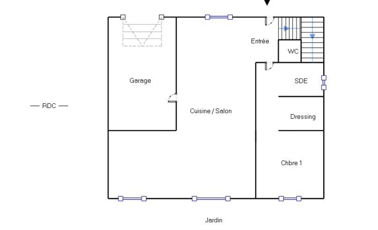 Accessible depuis le parking goudronné par un portillon aluminium, l'accès à la maison se fait par 3 marches.