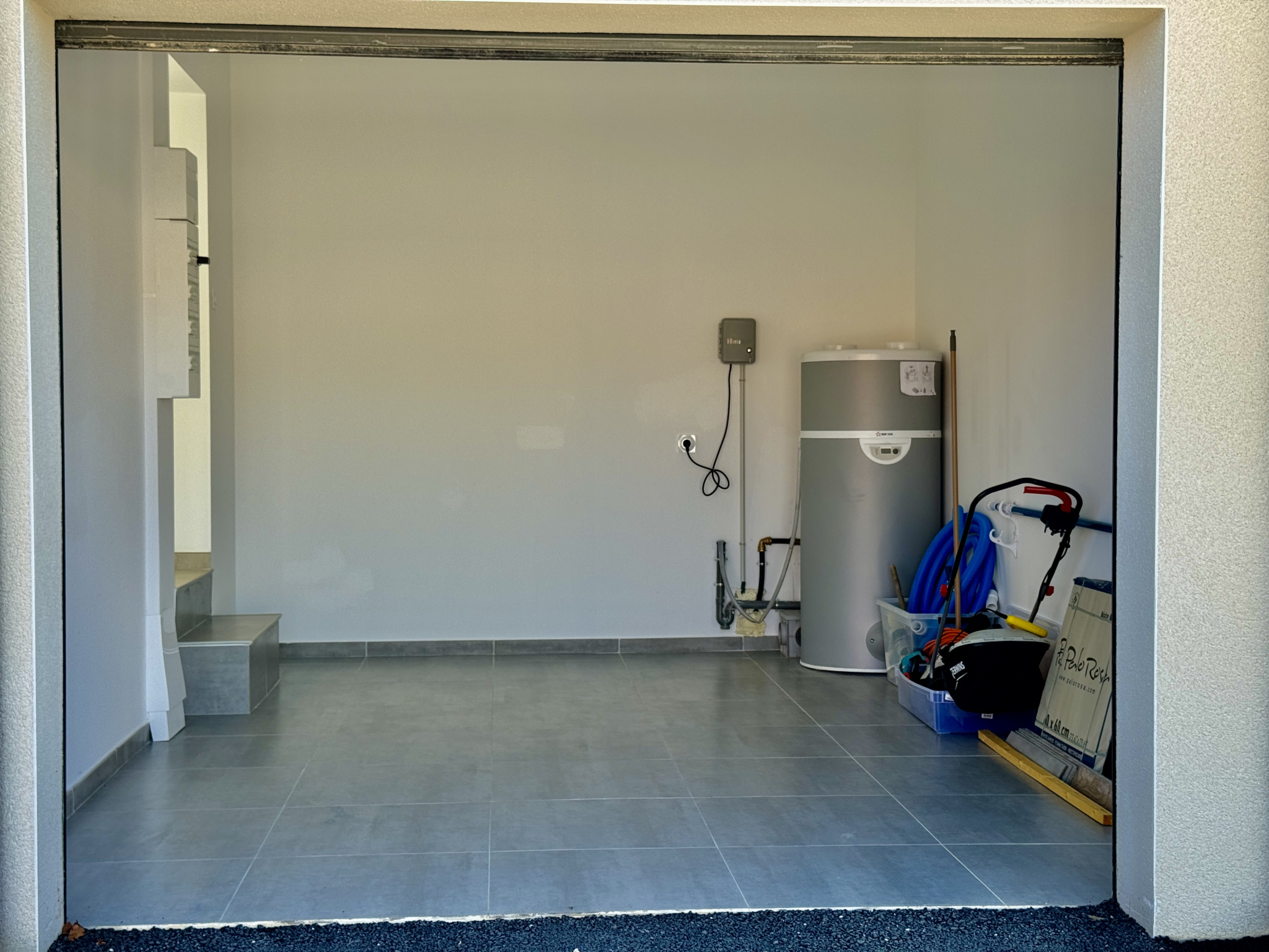 Construction de 2025, RT 2020, dossier urbanisme complet, garantie décénale, diagnostics impeccables en A/A, ballon thermodynamique, chauffage pompe a chaleur par bouches ventilées et thermostat par pièce, électricité Schneider, huisserie alu double vitrage, toit 4 pentes avec isolation ouate cellulose projetée, cuisine équipée (four, lave vaisselle, vitro 4 feux, hotte, micro-onde), les sols sont en carrelage de choix effet bois pour les parties nuit et gris de 1 m2 pour la pièce de vie, visiophone, garage avec porte électrique, entrée et place de parking goudronnée, piscine au sel avec liner en pvc armé et parpaings de 27 cm banchés, jardin arboré (récemment) et cloturé sur muret de 50 avec clôtures metalliques rigides, coté vignes grillage rigide jusqu'en bas, les allées gravillionnées.