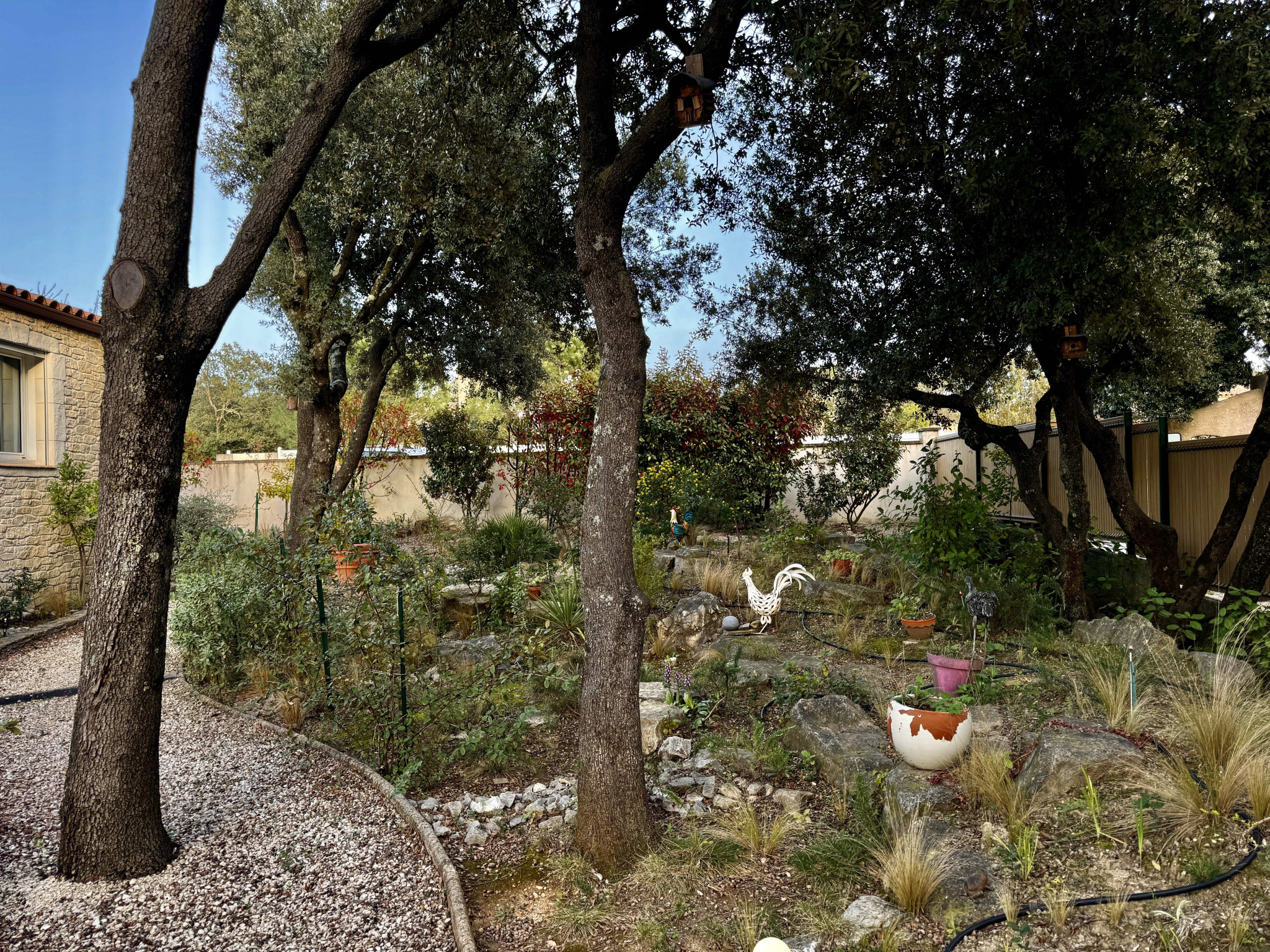 À 200 m de la garrigue et de ses balades, sur une parcelle de 1 250 m² aux belles proportions, clôturée, paysagée, sans vis-à-vis et au calme, vous trouverez :