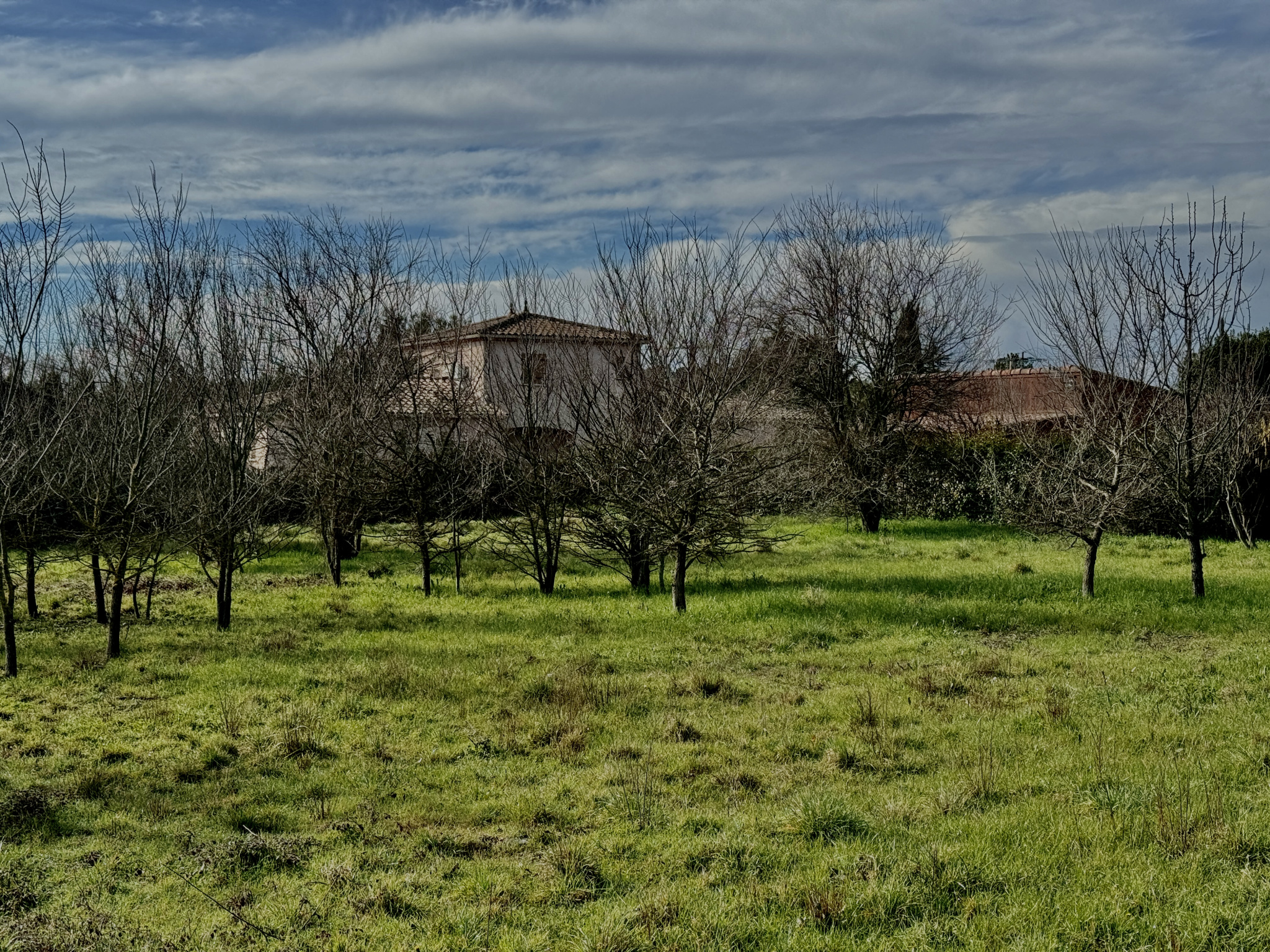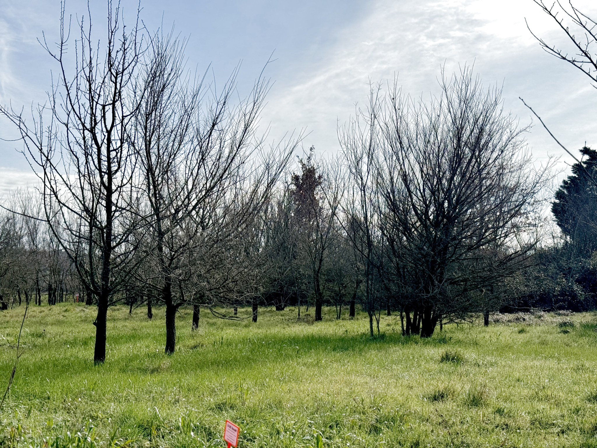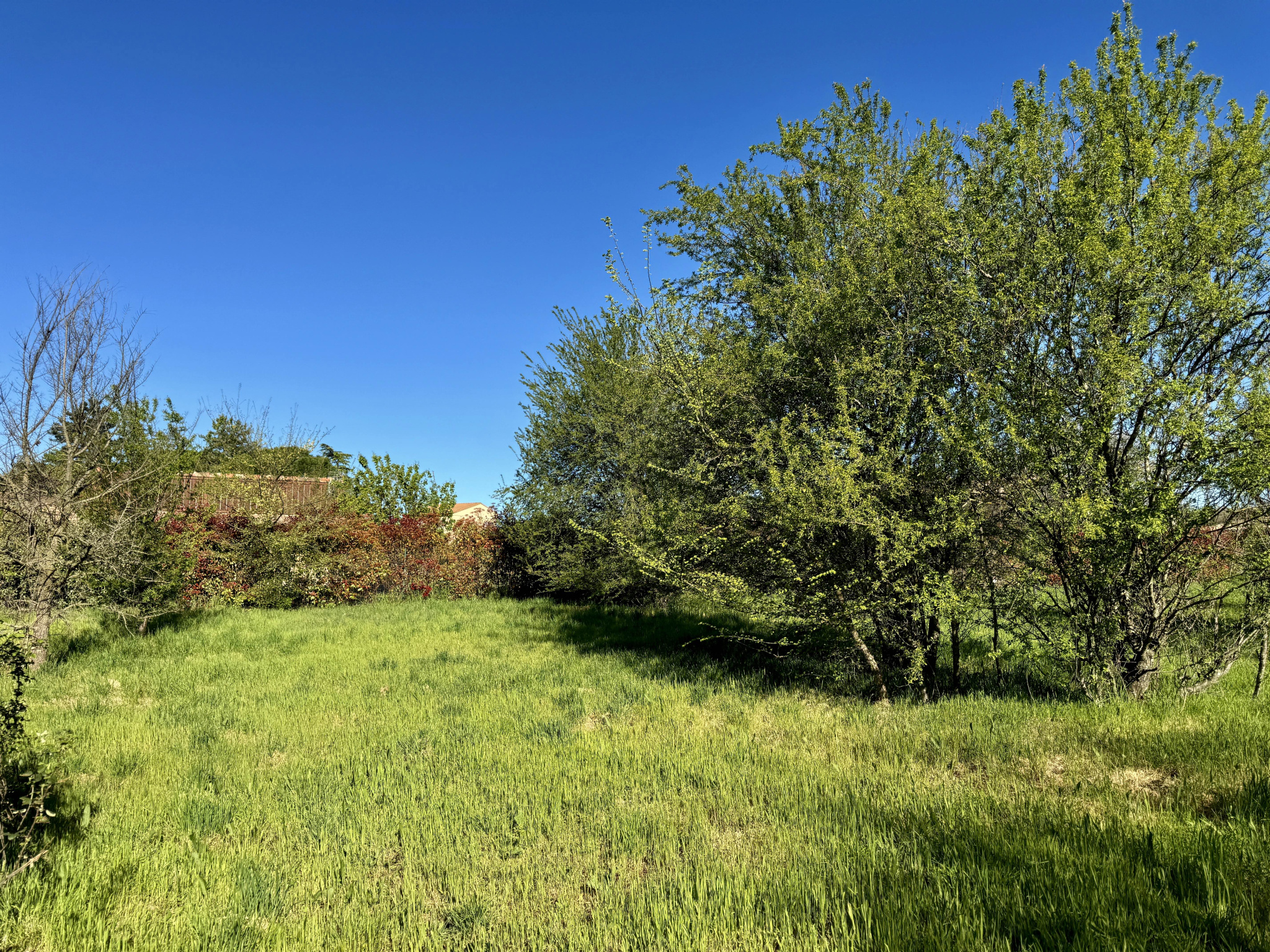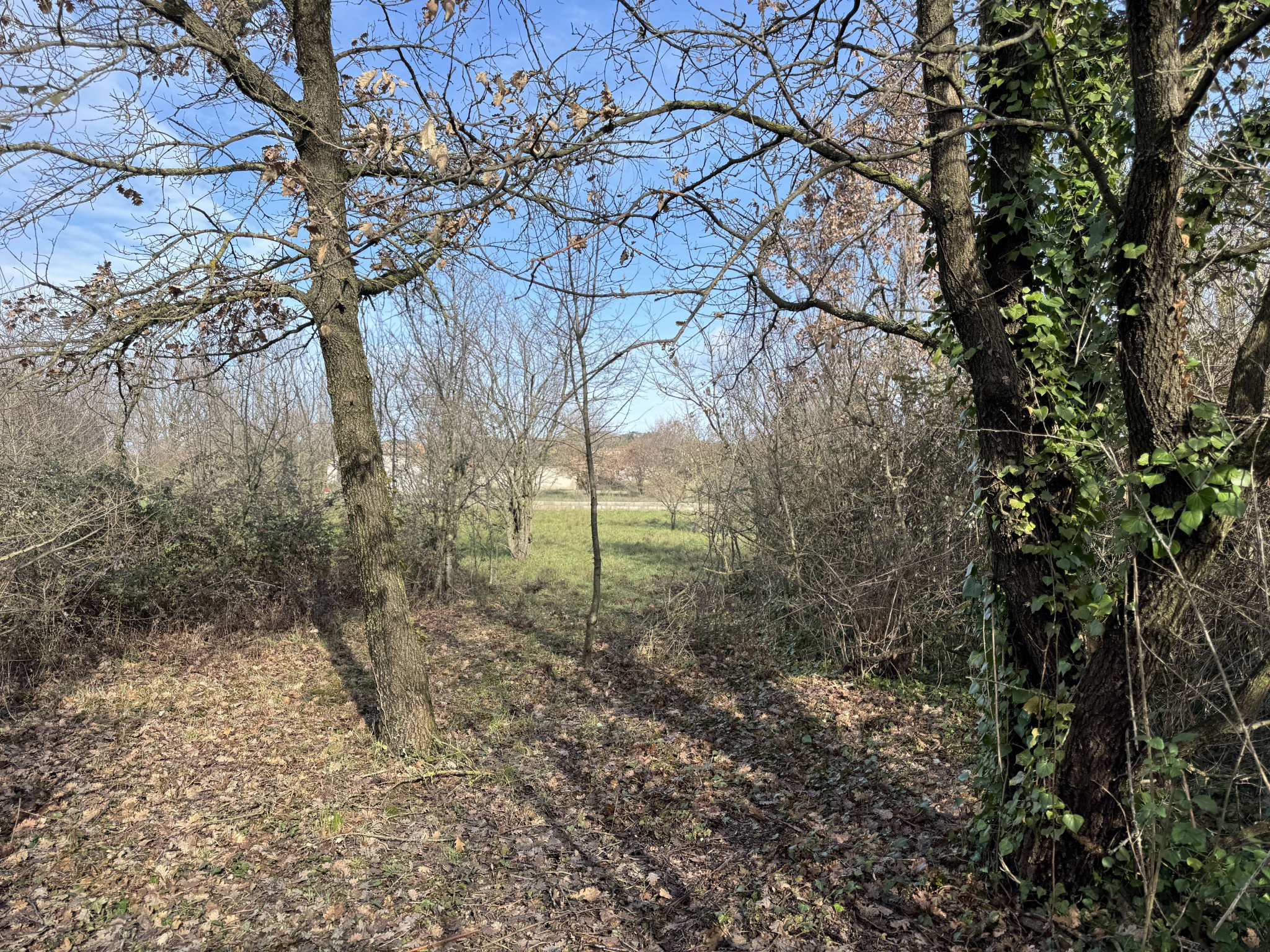 Terrain plat, aux belles proportions (42 x 55), parsemé d’arbres